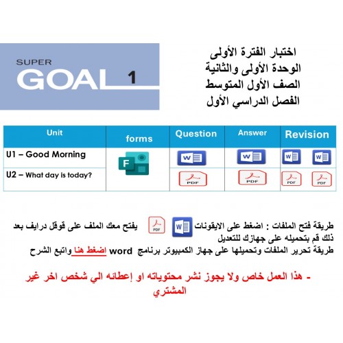 اختبار الفترة الأولى منهج Super Goal 1 - الوحدتين الأولى والثانية ( ورقي - Forms ) الفصل الدراسي الأول + المراجعة