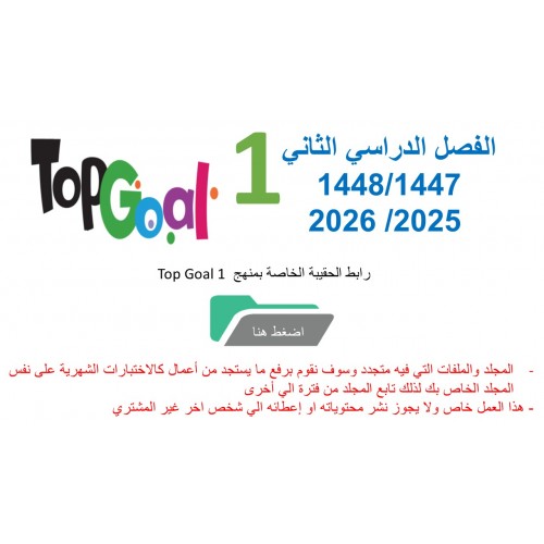 • حقيبة منهج Top Goal 1 للصف الرابع الابتدائي الفصل الدراسي الثاني 1447